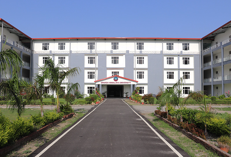 A unique university spread across a lush green 05 acre campus, the institution stands out with its beautifully designed architecture and impressive infrastructure. The campus is strategically located near Kanvashram, adding to its serene and inspiring environment. Through its 08 schools, the University offers a wide range of multidisciplinary programmes in Pharmacy, Management, Para Medical Sciences, Computer Applications, Diploma in Engineering, Applied Sciences, Humanities, and Nursing. Students from more than 15 districts and several states place their trust in the Universitys academic curriculum and learning environment. The petals leading toward a star symbolize the Universitys cherished mission to provide education beyond boundaries and to empower both students and faculty to achieve new heights of success across the globe.